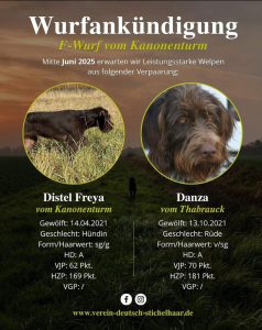 Mitte Juni erwarten wir den F-Wurf vom Kanonenturm. Leistungsstarke Welpen aus der Verpaarung